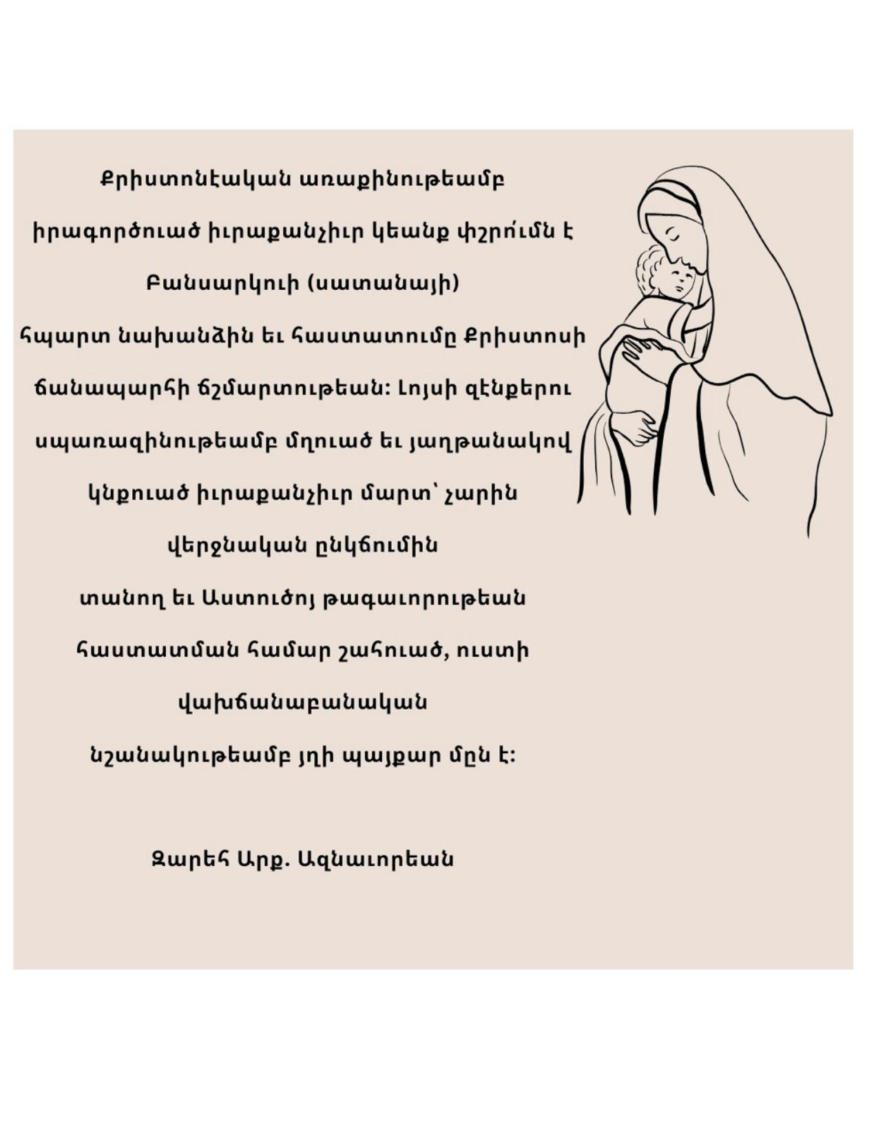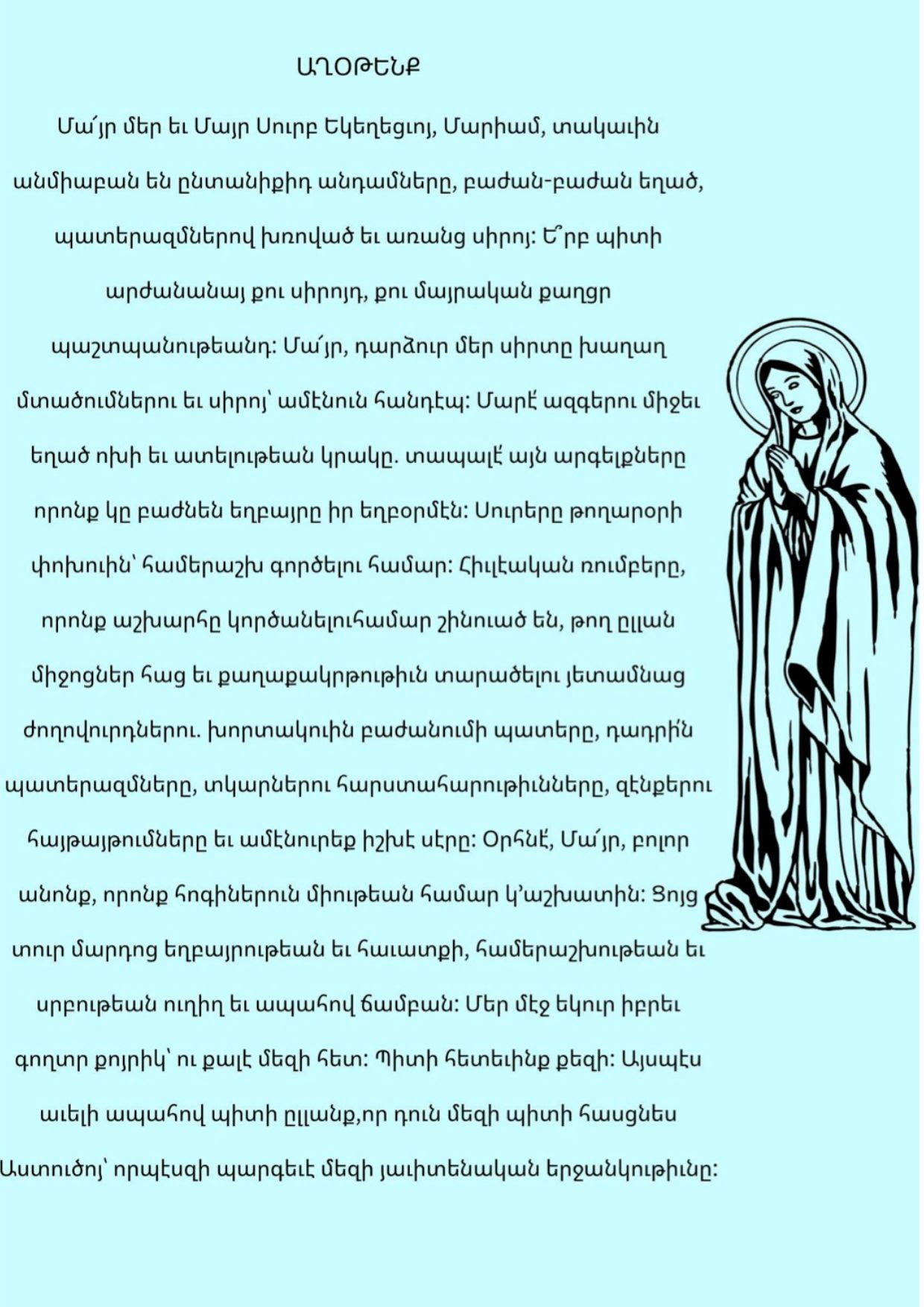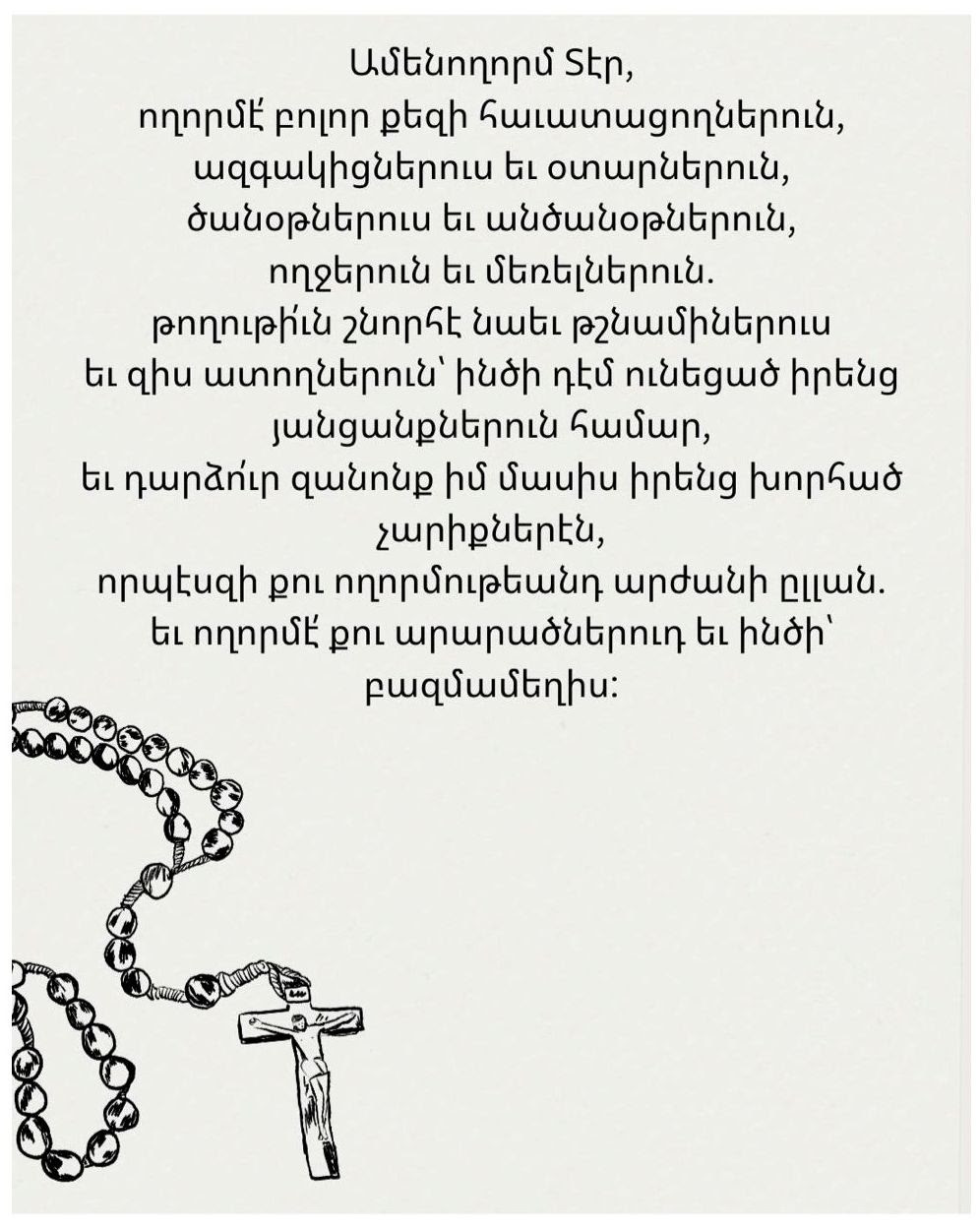 Միշտ Քեզի ծնրադրելով կ’աղաչենք մարդասէր Ս. Հոգի որ այս մարմնաւոր կեանքի ընթացքին մեր հոգիները պահպանես: Աներկիւղ անցնինք այս աշխարհէն, փրկուինք պիղծ դեւերէ եւ առաջնորդուինք ապահով … Read more