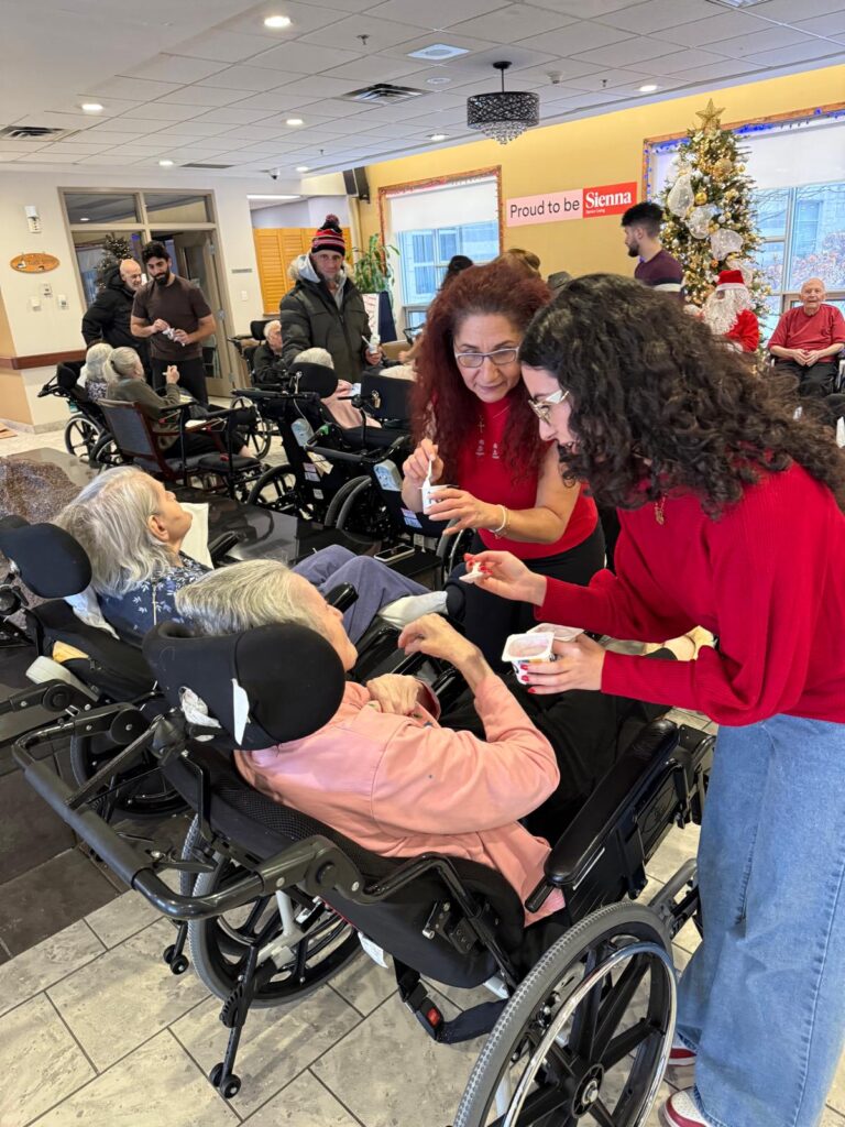 Մեծ ուրախութեամբ կամաւորները բարձրացան մամիկներուն ու պապիկներուն սենեակները՝ զանոնք սրահ իջեցնելու եւ միասին ուրախ ժամանակ անցընելու համար։ Անոնք սիրով հաղորդակից դարձան երէցներուն ապրումներուն, լսեցին անոնց ցաւերն ու ուրախութիւնները. Իսկ Սուրբ Ծննդեան օրհնաբեր ոգին կը տիրէր բոլորին սրտերուն մէջ։