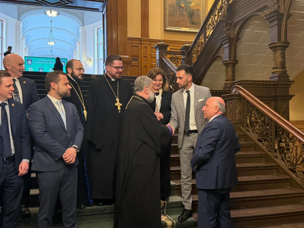 Չորեքշաբթի, 1 Ապրիլ 2026-ին, Գանատայի Հայոց Թեմի Բարեխնամ Առաջնորդ Գերաշնորհ Տ. Բաբգէն Արքեպիսկոպոս Չարեան, ընկերակցութեամբ՝ Ս. Աստուածածին Եկեղեցւոյ Հոգեւոր Տեսուչ՝ Գերապատիւ Տ. Գարեգին Ծ. Վարդապետ Շխրտմեանի, Առաջնորդի Օգնական՝ Հոգեշնորհ Տ. Յակոբ Վարդապետ Եագուպեանի եւ Ազգային Վարչութեան Ատենապետ՝ Տիկին Ծովիկ Թերզեանի, այցելեց Օնթարիոյ Նահանգի Խորհրդարան։
