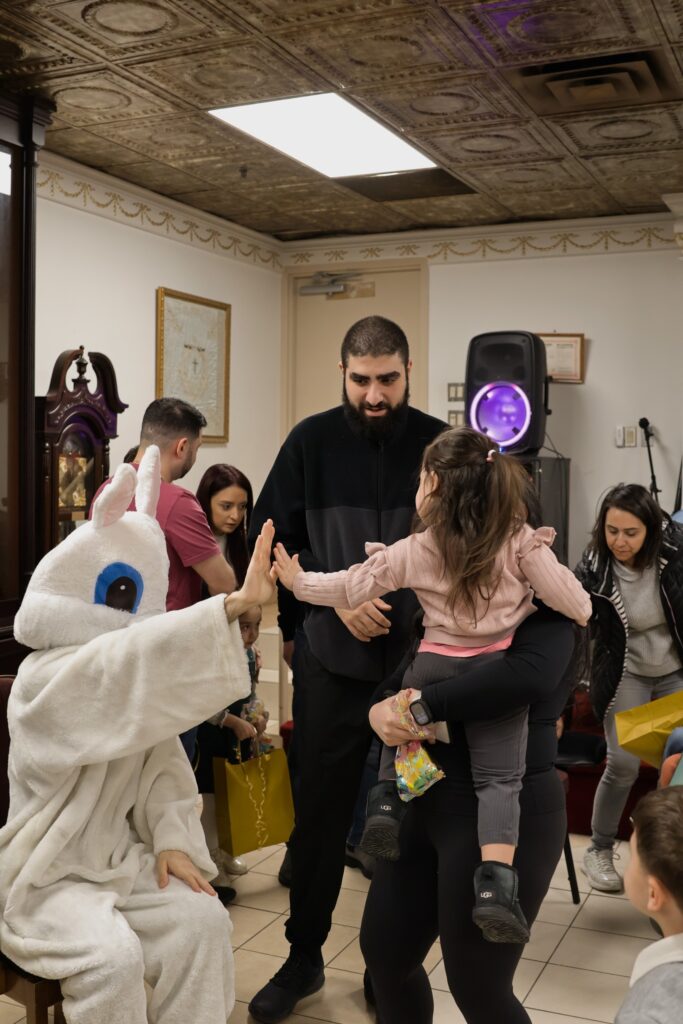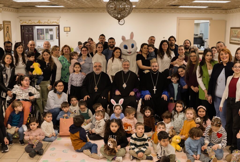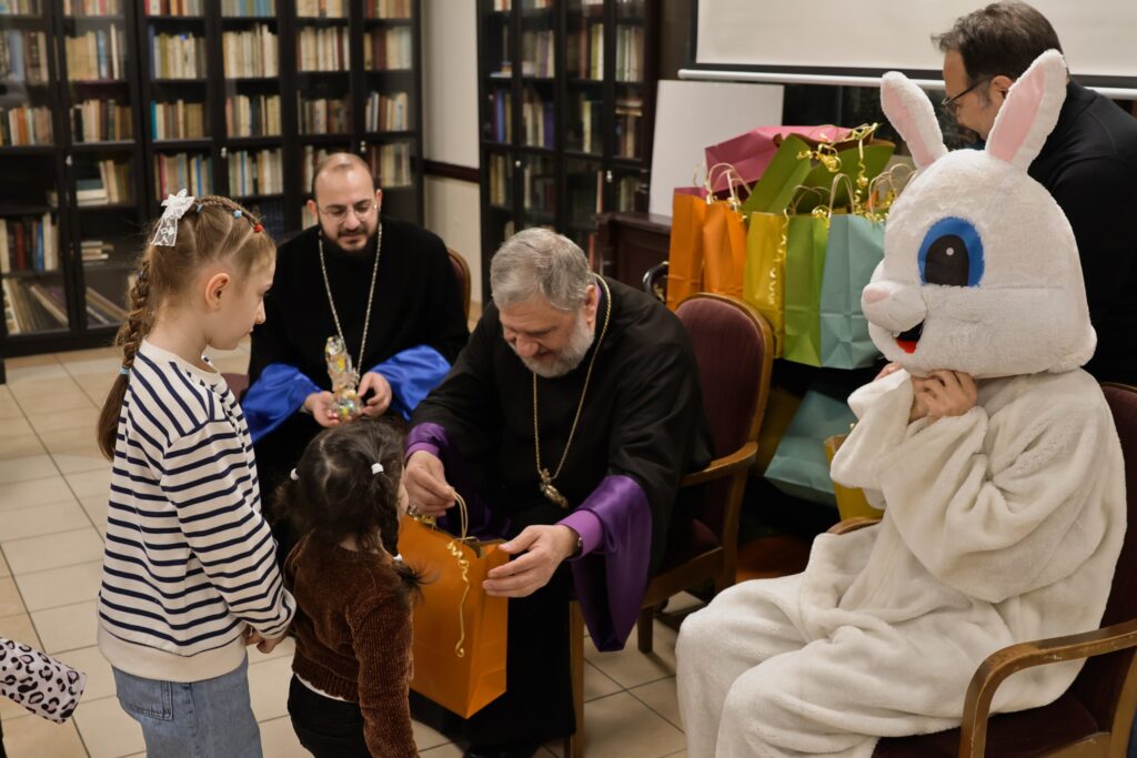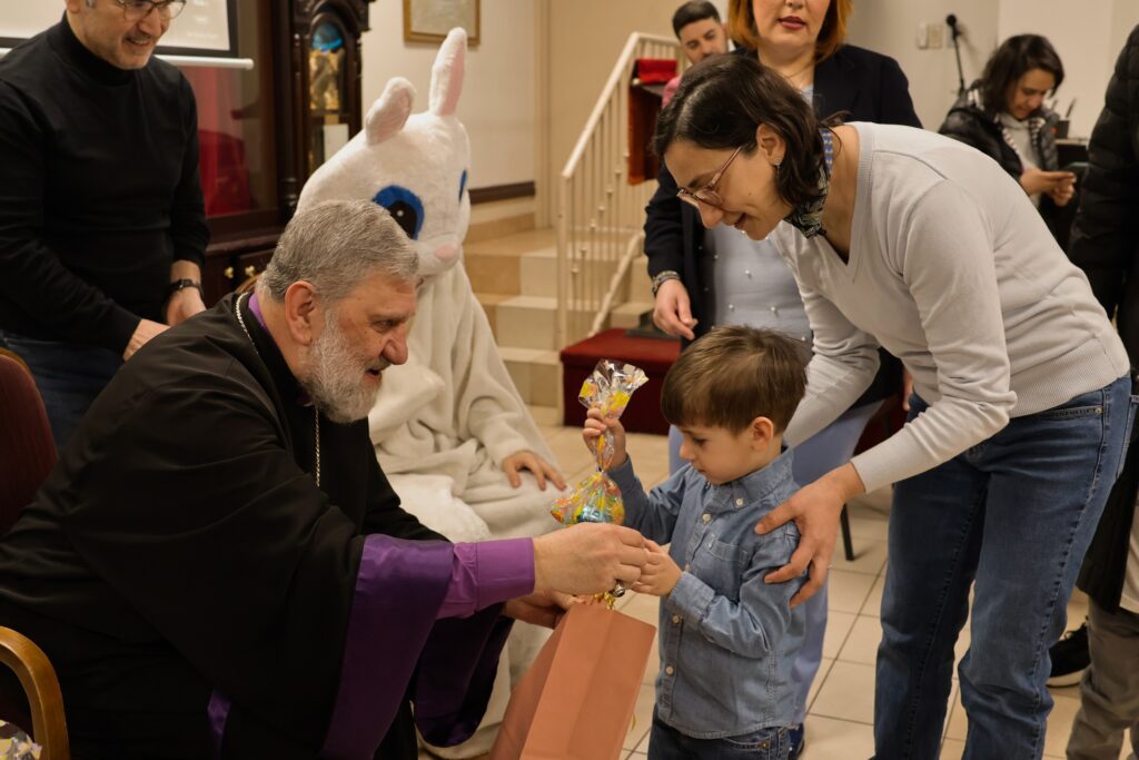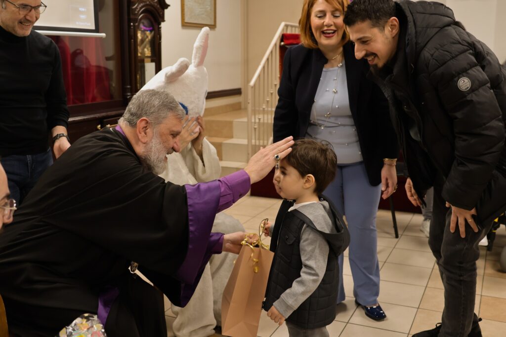Ուրախ մթնոլորտը աւելի խանդավառ դարձաւ նապաստակի անակնկալ այցելութեամբ, որ մեծ ուրախութիւն պատճառեց փոքրիկներուն։ Այնուհետեւ Սրբազան Հայրը յանձնեց Յանձնախումբին կողմէ պատրաստուած նուէրներն ու շոքոլատներով ու շաքարներով լեցուն տոպրակները։
