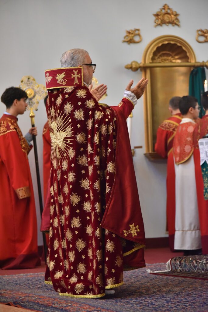 Ցած ձայնով կ’արտասանէ «Լուացից սրբութեամբ զձեռս իմ» սաղմոսը եւ կը լուայ իր ձեռքերը: Բարձրաձայն կ’աղօթէ ու կը խնդրէ Տիրոջ ողորմութիւնը: Հրապարակաւ կը խոստովանի իր մեղքերը Աստուծոյ, Ս. Աստուածածնին, բոլոր սուրբերուն ու նաեւ ներկայ հաւատացեալներուն առջեւ: Կը խնդրէ ժողովուրդէն, որ աղօթէ իրեն համար: